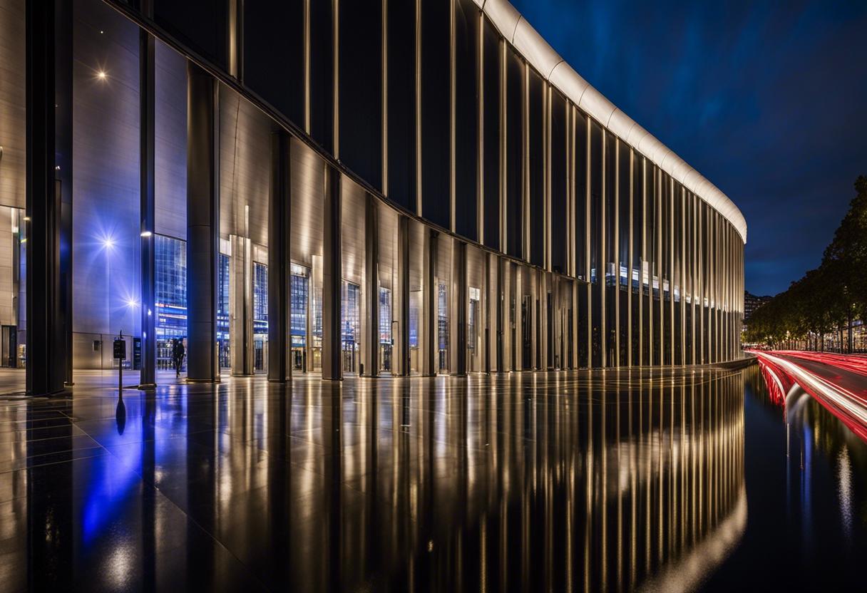 Le décor est une imitation de l’immense amphithéâtre délabré de la Sorbonne, où les livres – symboles du savoir et de la culture assujettis à l’autodafé – alimentent la flamme de la déesse du foyer dans la religion romaine. De temps à autre, un grand mur de béton ferme la scène, symbolisant un monde sans futur ni perspectives où les récalcitrants sont pendus ; les dissidents sont confrontés à la mise en scène ou à la mort. Les défilés militaires impressionnants d’un côté, les processions rituelles avec reliques, icônes, chars et effigies de l’autre : tant les mouvements de masse que la direction des acteurs, se conforment parfaitement au cadre, invitant parfois, de façon inattendue, au ridicule qui a le mérite de délivrer de l’ennui.