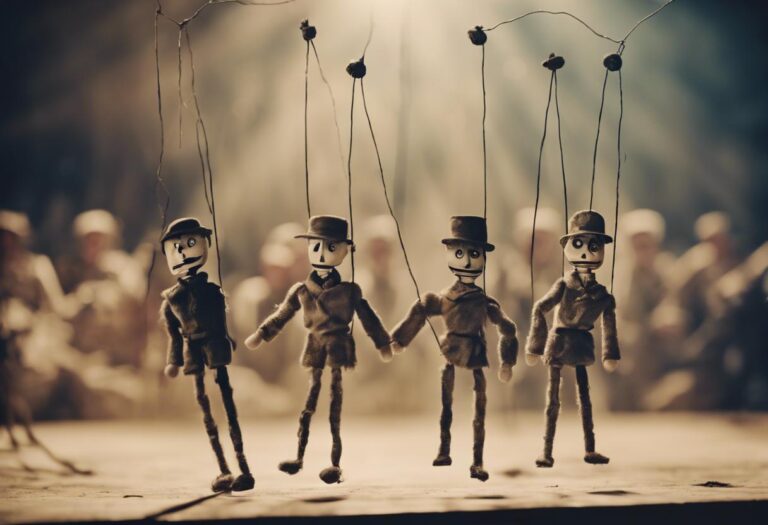 Les 18 petites marionnettes à fils, contrôlées adroitement par les deux acteurs, ajoutent un élément visuel dramatique à la performance. Leurs corps en tissu, leurs visages en résine qui semblent faits de porcelaine, le fond noir et les panneaux qui dissimulent parfois les marionnettes et les acteurs, tout cela renforce la tragédie de la représentation. Ces petites créatures sont les véritables protagonistes de cette série d’histoires courtes créées par Herbin et Svedaite, mettant en scène la tragédie de la guerre.
