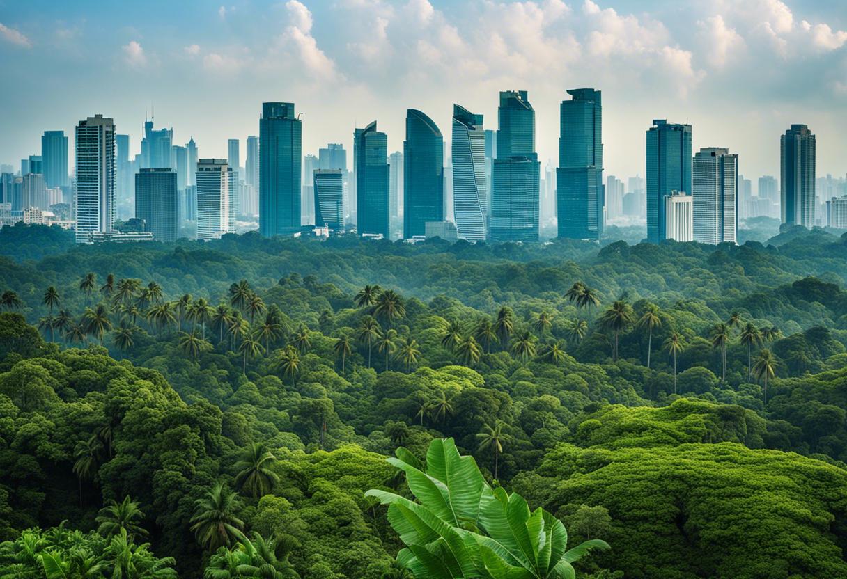 Nusantara joue un rôle aussi comme une alternative écologique à Djakarta, la capitale actuelle située à 1236 kilomètres de distance. Djakarta, avec sa population de dix millions d’habitants, lutte contre les effets de décennies de prélèvement imprévoyant de ses eaux souterraines et de l’élévation du niveau de la mer – 40% du territoire de la ville se situe au-dessous du niveau de la mer. Nusantara ambitionne d’atteindre la neutralité carbone en 2045 et dispose d’un « plan directeur » pour la conservation de la biodiversité. Cependant, à l’horizon 2045, Nusantara ne devrait absorber qu’une fraction de la population de Djakarta, estimée à 1,9 million de personnes, selon les plans actuels.