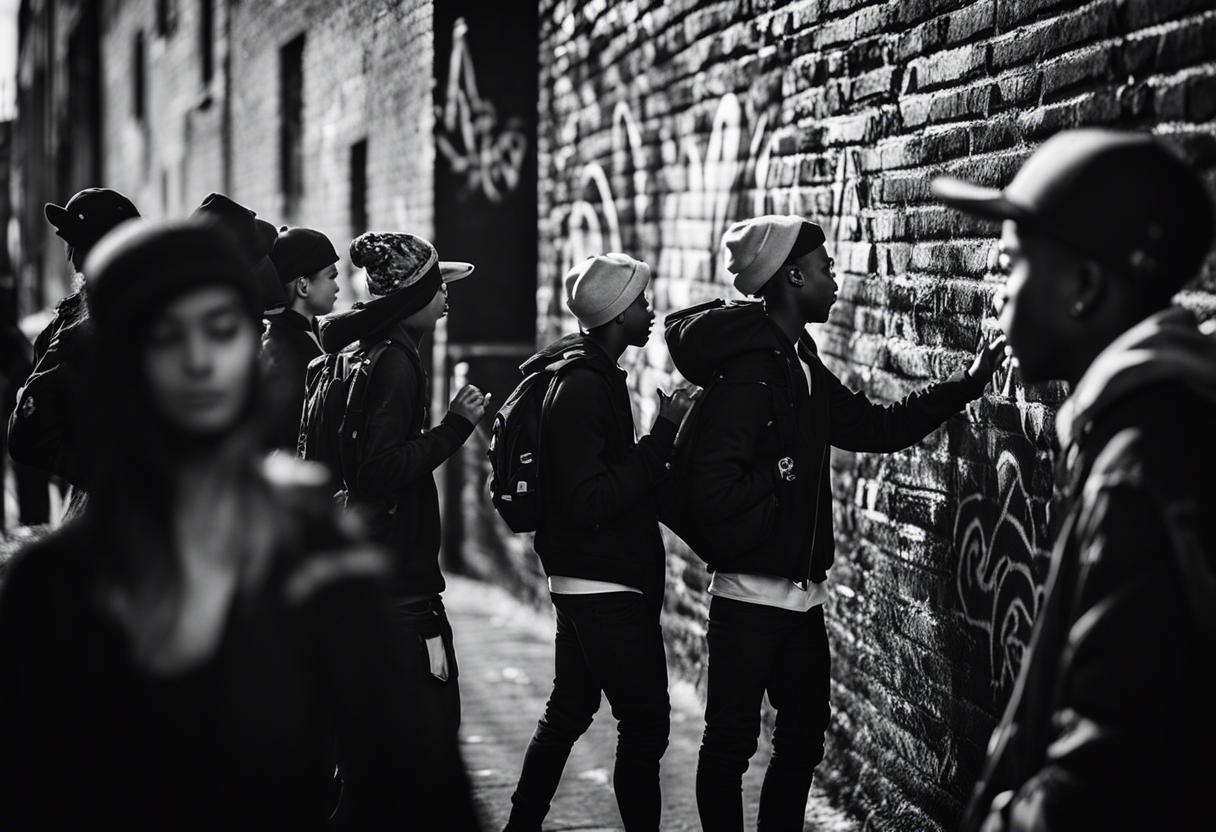 Au premier coup d’œil, on aurait pu confondre l’atmosphère avec celle d’une fête d’école chaleureuse et conviviale. Une scène rudimentaire était érigée contre un panneau de basket et le bord d’un gradin, avec un système de son hésitant qui diffusait péniblement une cacophonie de rythmes scratchés. Des banderoles parsemées de graffitis colorés et imposants, encore chargés de l’odeur de peinture en aérosol, pendaient ici et là.