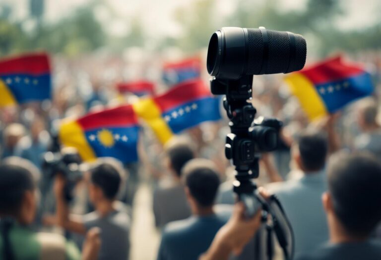 Selon le Syndicat des travailleurs de la presse (SNTP), quatre reporteurs ont été arrêtés et accusés de « terrorisme » pendant les désordres survenus après l’élection présidentielle du 28 juillet au Venezuela. Le mercredi 7 août, le SNTP a diffusé une déclaration condamnant l’emploi illégal et abusif des législations anti-terroristes dans le pays, spécifiquement envers les journalistes appréhendés lors des protestations post-électorales.