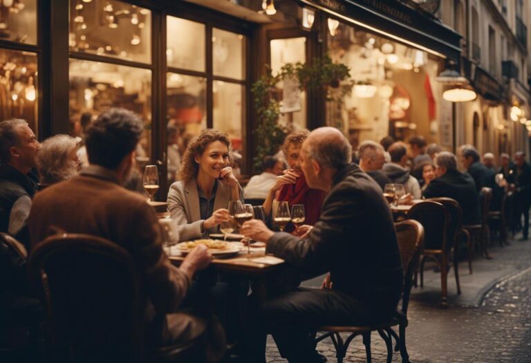 Chez Lucette se distingue de loin, telle un phare culinaire, avec ses longs stores à rayures rouges et blanches. À l’intérieur, on tombe sur un décor qui évoque une époque que seuls ceux qui ont plus de 80 ans peuvent connaître : des banquettes rétro, des nappes à carreaux, des bouquets d’abat-jour à franges suspendus aux hauts plafonds. De vieilles valises sont dispersées ici et là, tandis que des serveurs habillés de costumes sombres, avec nœud papillon et tablier, se déplacent entre les tables, renforçant l’illusion d’un hall de gare du début du siècle précédent.