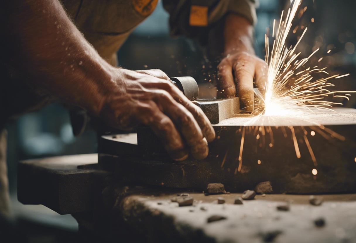 Simon Bos, le propriétaire franco-britannique d’une boucherie, souligne l’importance de la dextérité et la précision dans l’utilisation du fusil à aiguiser. Il démontre cela en sortant une épaule d’agneau de sa chambre froide et en la posant sur une grande planche de bois. Après avoir récupéré son fusil à aiguiser, il dégaine un couteau à désosser. Il manipule le fusil avec précision et rapidité, chaque mouvement étant aussi précis que celui d’un chirurgien. Avec une main, il tient le fusil fermement à l’horizontale, tandis que de l’autre, il frotte plusieurs fois la lame du couteau contre la mèche, cassant son poignet de manière concentrique.