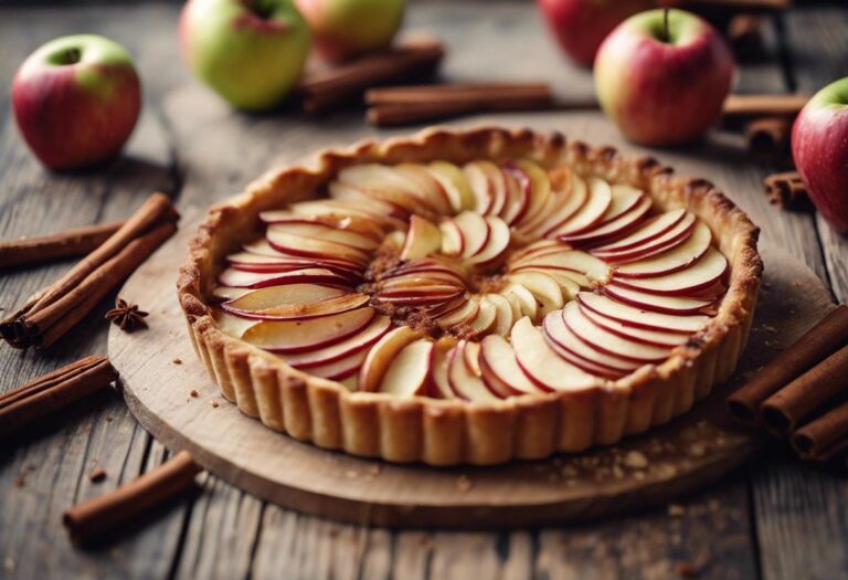 Elle est composée d’une base de pâte feuilletée, de crème pâtissière, et de tranches de pomme.