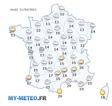 Avec infos.fr retrouvez votre bulletin météo du jeudi 11 avril 2013 concernant la France. Pour vendredi, retrouvez notre carte sur cette page.
