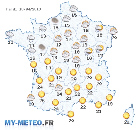 Avec infos.fr retrouvez votre bulletin météo du mardi 16 avril 2013 en France. Pour les jours suivant, retrouvez notre carte sur cette page, avec le bulletin météo en vidéo.