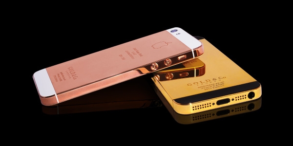 Alors que certains vont devoir se racheter des adaptateurs pour faire fonctionner leur nouveau joujou avec leurs anciens accessoires, certains n’auront sûrement pas les même soucis avec les iPhone présentés ici.. En effet, pour ceux qui aimeraient toutefois se démarquer, et qui ont un portefeuille bien garni il va sans dire, une société des Emirats Arabes Unis (Gold & Co, ça ne s’invente pas), vous propose de customiser votre iPhone 5 64 Go en le plaquant d’or 24 carats ! Comme le note iphon.fr, 2 couleurs sont proposées : un blanc recouvert d’or rose et un modèle noir recouvert d’or classique. Au niveau du prix, l’iPhone en or rose coûtera 5100$ (environ 3900€), tandis que l’iPhone en or jaune est affiché au tarfi de 4700$ (3600e environ).