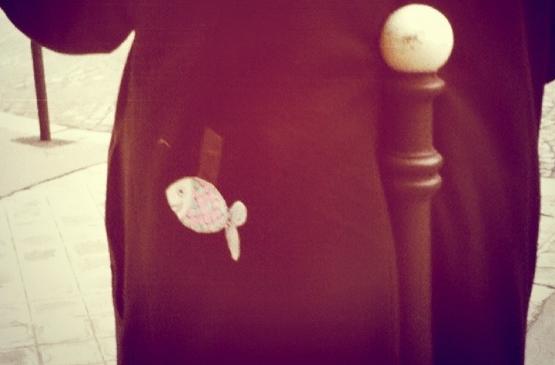 Qui n'a jamais fait la blague du papier et scotché au tee shirt de son camarade, j'imagine un vrai poisson accrocher a une doudoune bien lourde l'odeur sera au rendez vous !