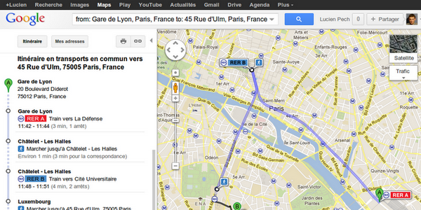 Google Maps peut à présent calculer un itinéraire dans les transports en commun de la ville de Paris. Cette nouvelle fonctionnalité est présente sur les ordinateurs de bureau, mais aussi sur les terminaux mobiles.