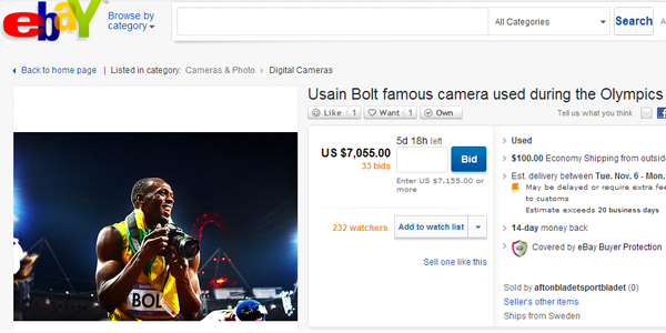 Enchère ebay avec l'appareil photo d'Usain Bolt