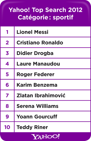 Yahoo ! vient de publier son classement des mots clés les plus recherchés sur son moteur en 2012.